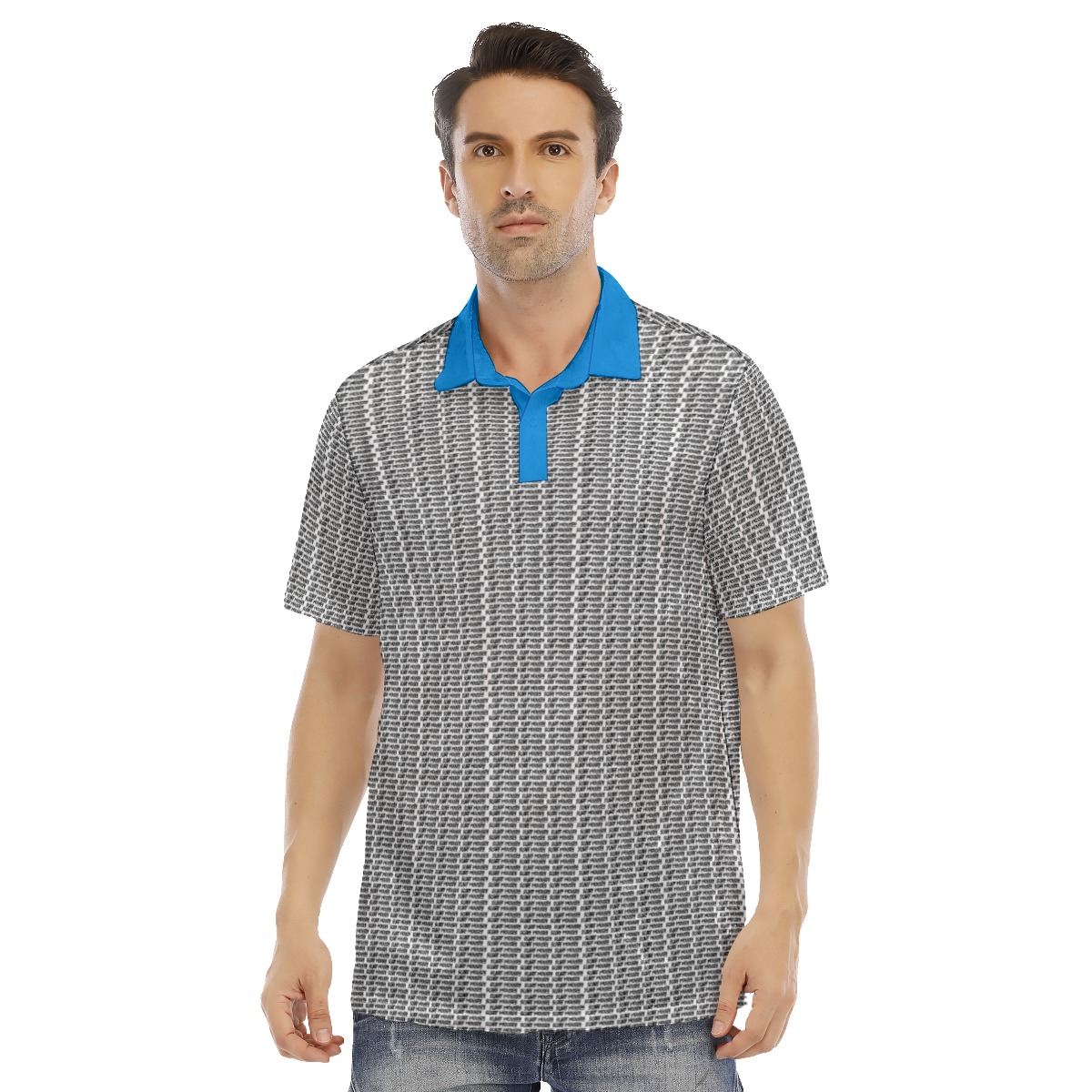 - Regular fit, stand-up collar, short sleeve