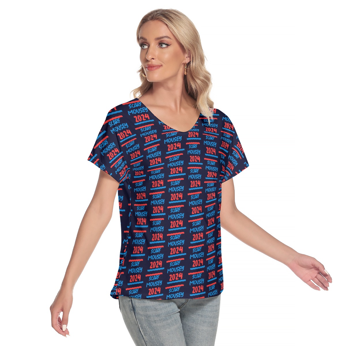 Vote for cute and comfortable with the Scarf Mousey Women's T-Shirt Loose V-Neck - 2024. Designed with an election 2024-inspired motif, this tee combines playful style with ultimate comfort, making it a must-have addition to your summer wardrobe.
